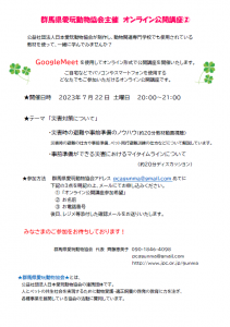 第2回群馬県愛玩動物協会主催オンライン公開講座のお知らせ