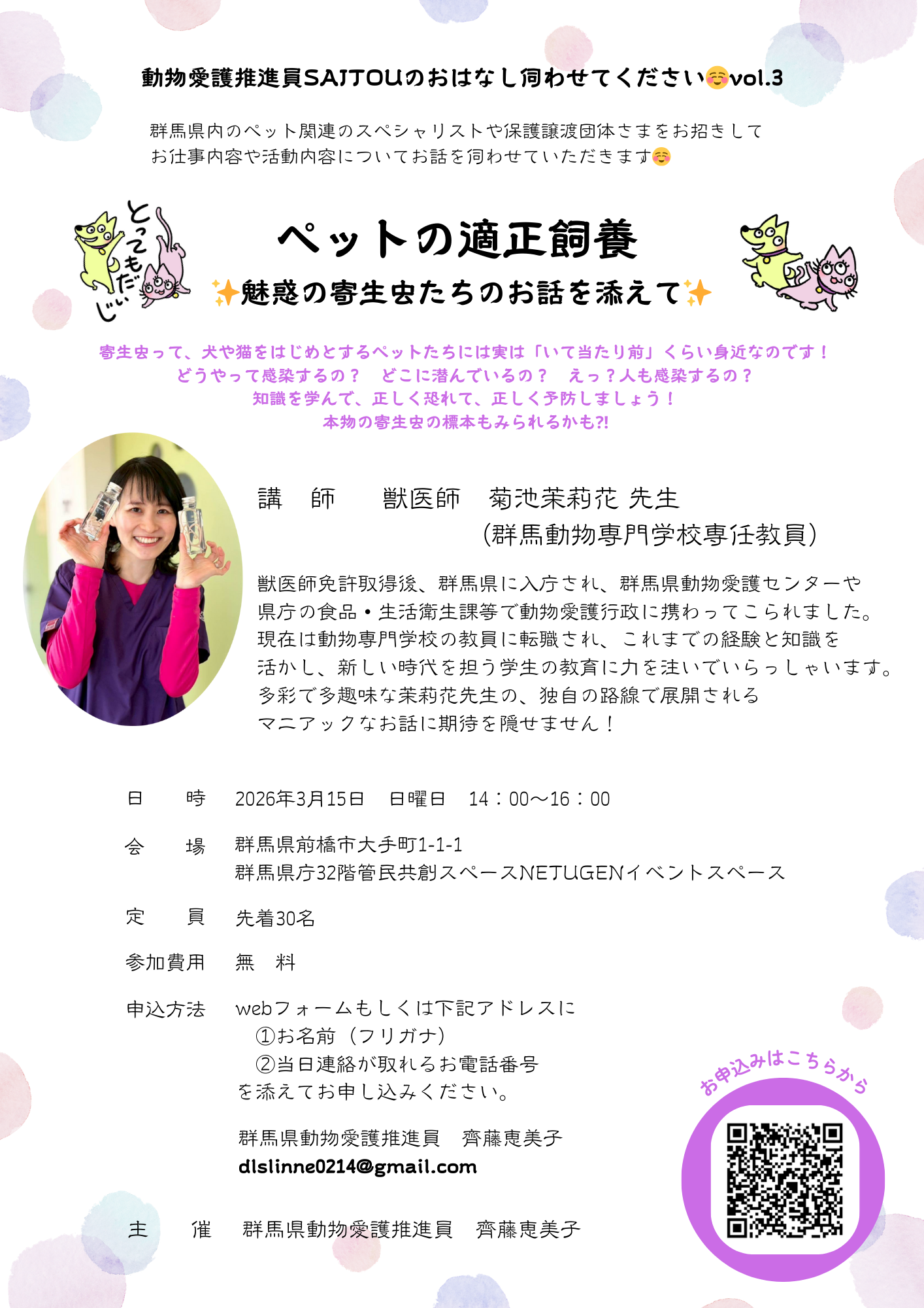 昨年度2025年2月23日に開催いたしました公開講座『ペットの適正飼養✨魅惑の寄生虫たちのお話を添えて✨』、お聞き逃しのみなさまにスペシャルなご案内です!