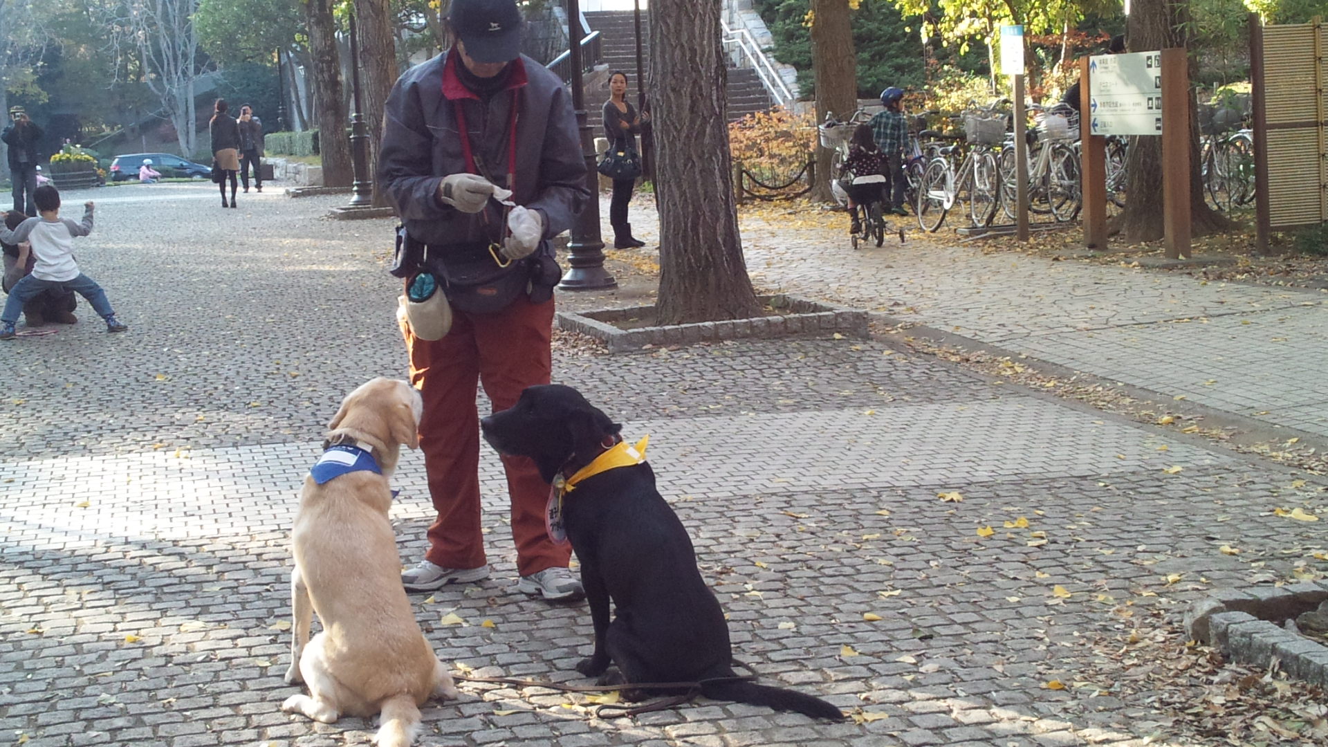 感想 : 天候に恵まれ、色づいた銀杏並木を歩くのは、とても気持ちのよいものでした。休日で賑わうなか、公園内のゴミ拾いをしながら、啓発と共に、多くの方に犬とのふれあいを楽しんでもらいました。いつも人と人を結び、皆を笑顔にしてくれる犬たちに感謝です。(常任幹事 尾形愛子)