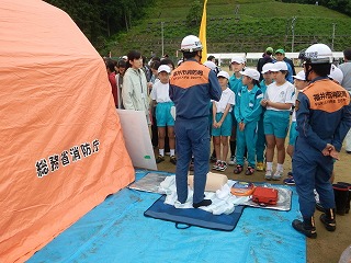 福井市の総合防災訓練の中で、(公社)福井県獣医師会さんが行われている『ペットの同行避難』を支所長のみが見学。