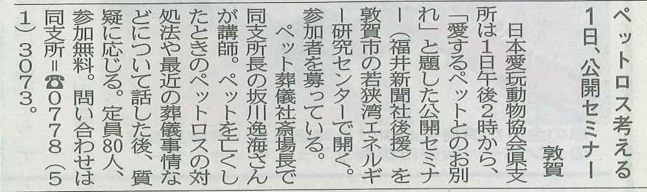 | 『ペットとの死別・ペットロス』公開セミナー |