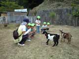 保育園児(年中組)30名 ヤギに直接餌を与えた 命の大切さ、動物に触ったら手を洗うことを伝えた 協会作成の折り紙を渡した。 |